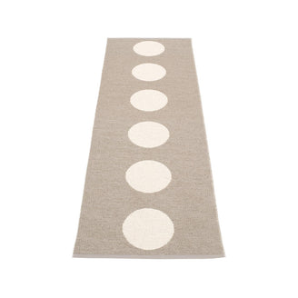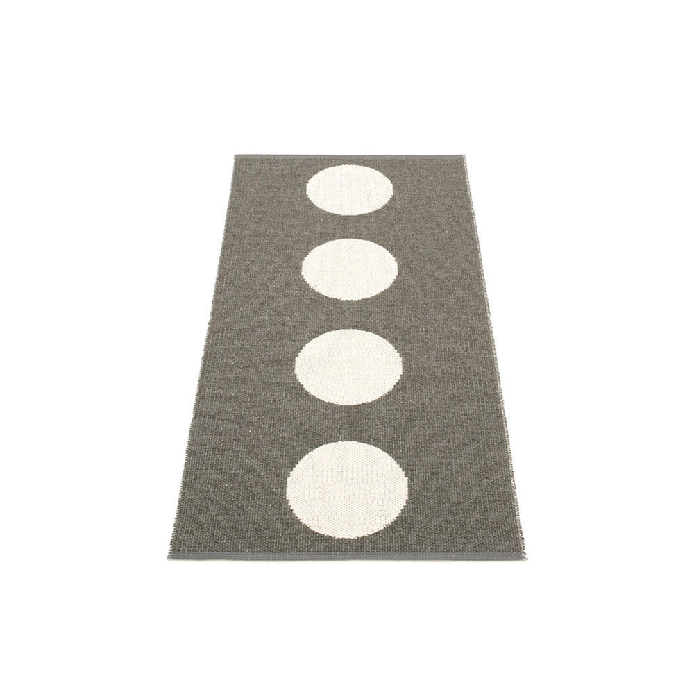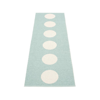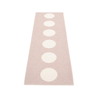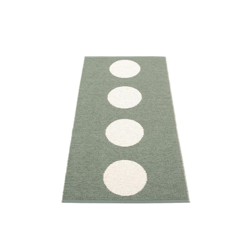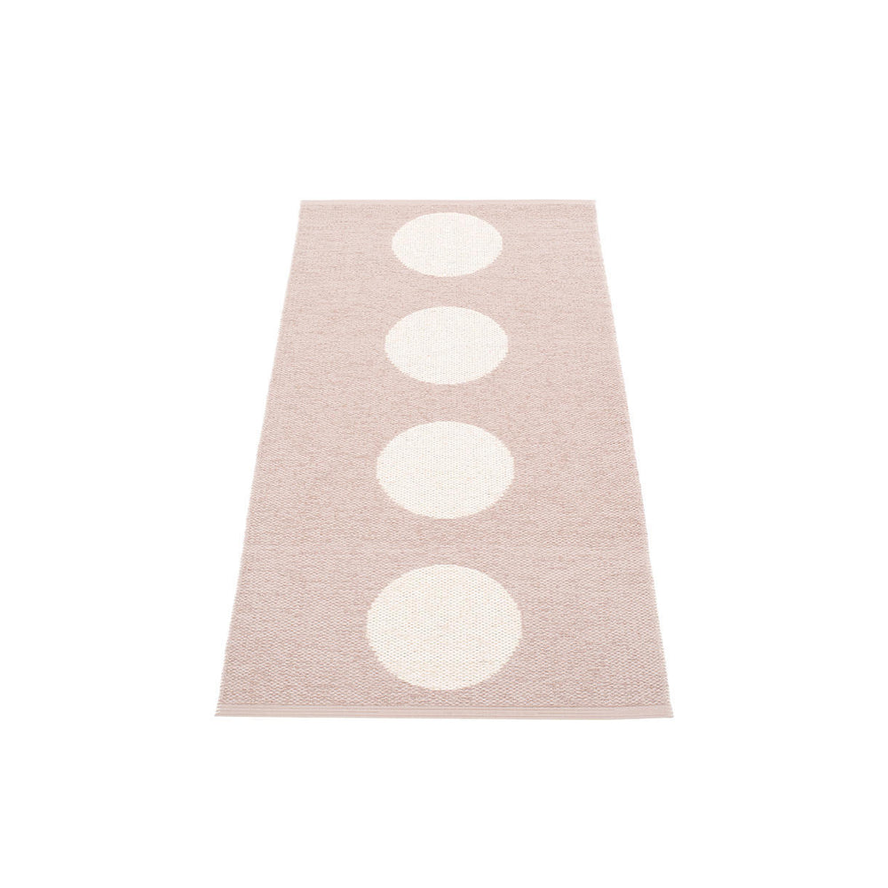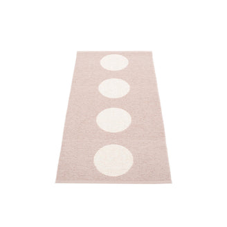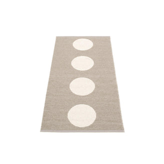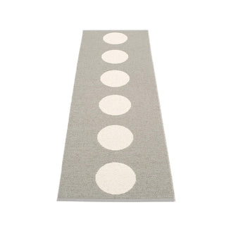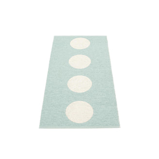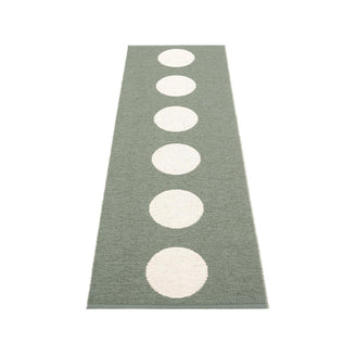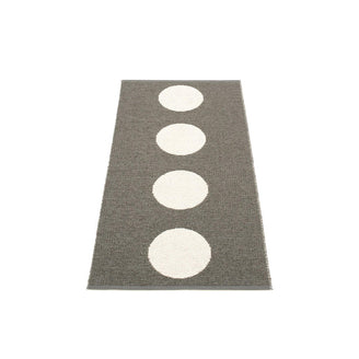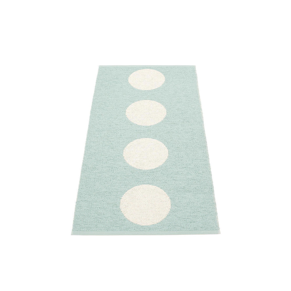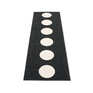 Made in Dalarna, Sweden. Woven on a traditional loom using wooden shuttles. Very practical and easy-to-care-for rug in Swedish manufactured PVC. Welded ribbon for strength and durability, with embossed Pappelina logo, at both edges.