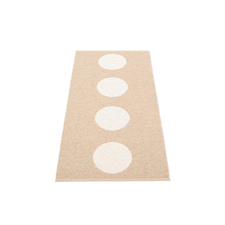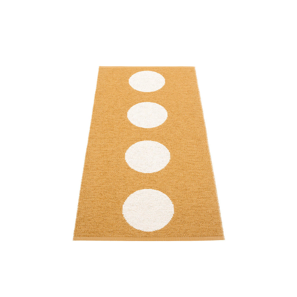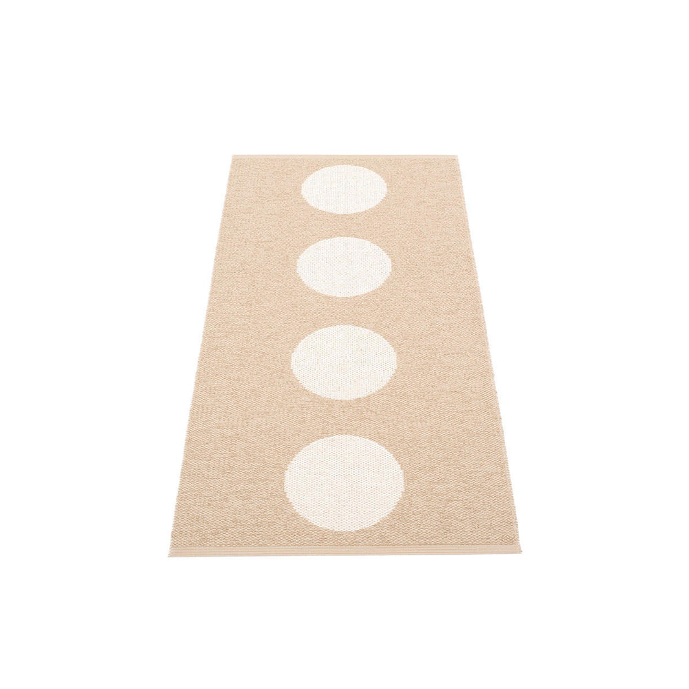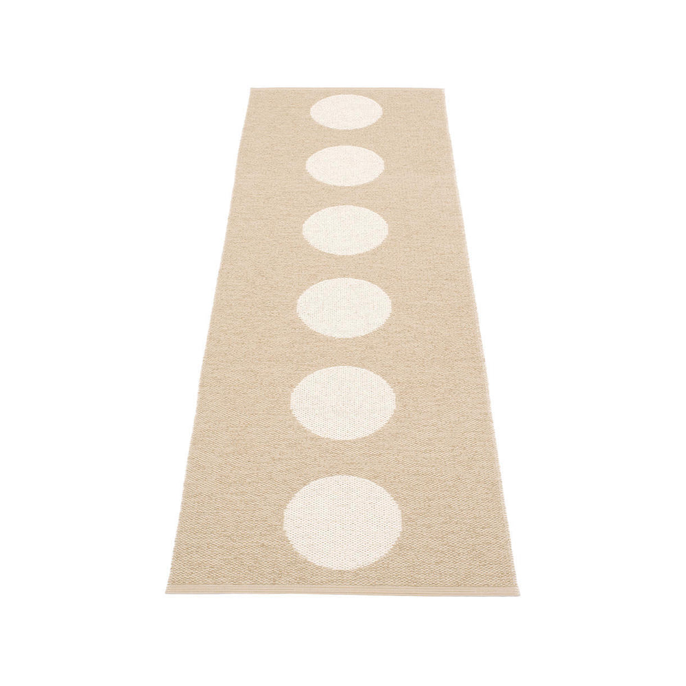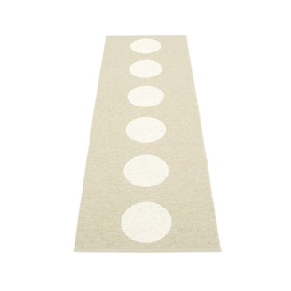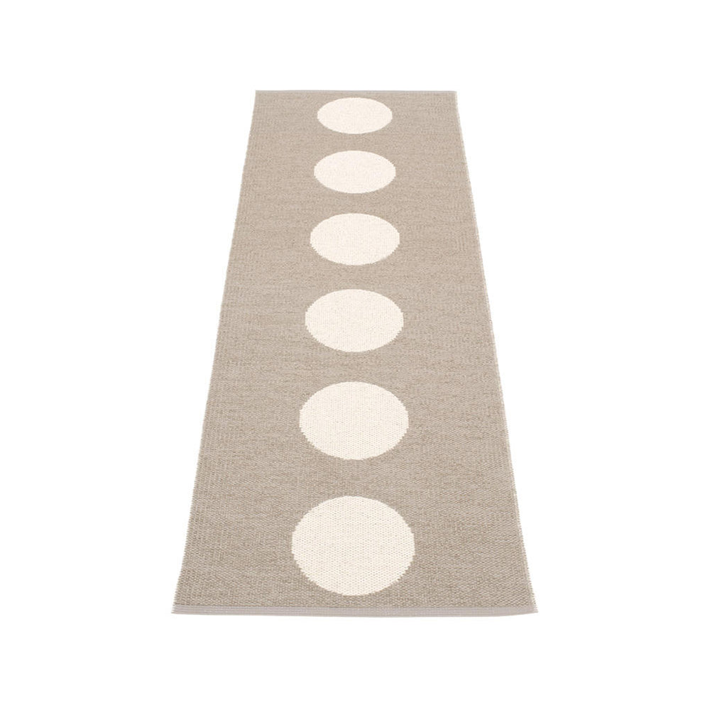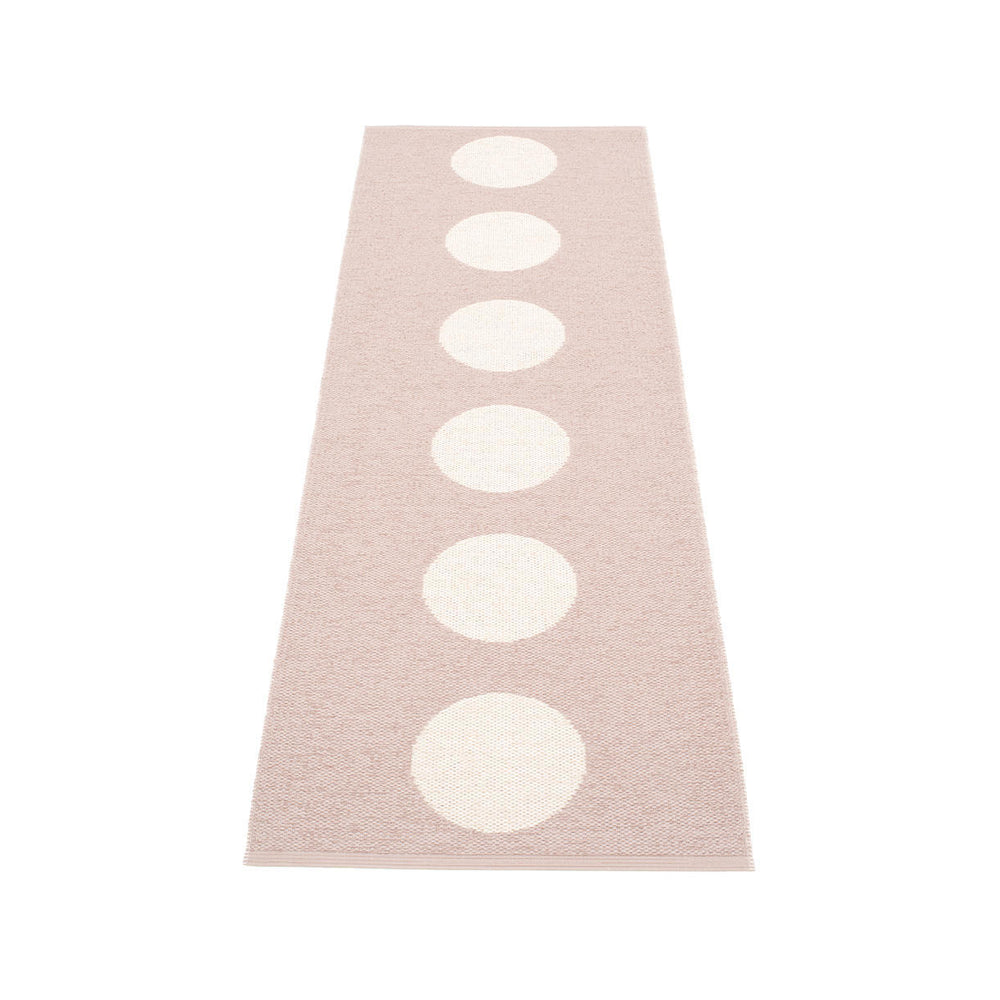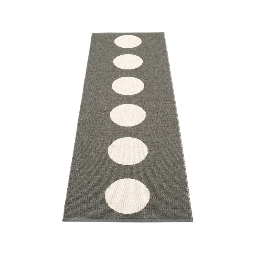 Made in Dalarna, Sweden. Woven on a traditional loom using wooden shuttles. Very practical and easy-to-care-for rug in Swedish manufactured PVC. Welded ribbon for strength and durability, with embossed Pappelina logo, at both edges.