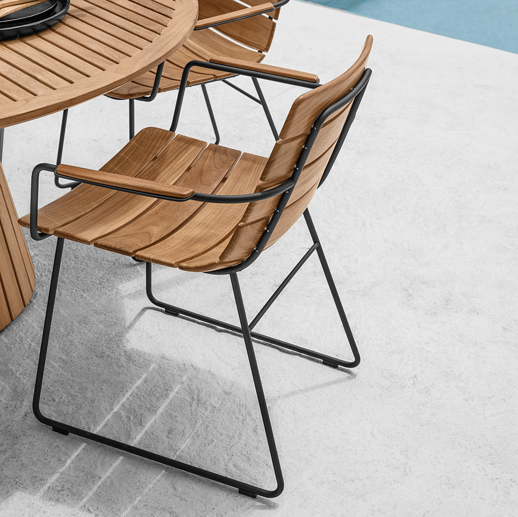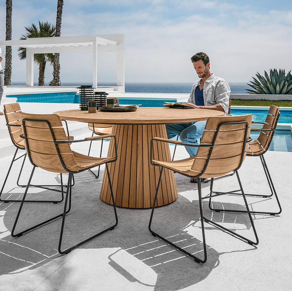Matching teak armrests continue the simply stylish message, while optional seat pads in a variety of durable outdoor fabrics are available if required.