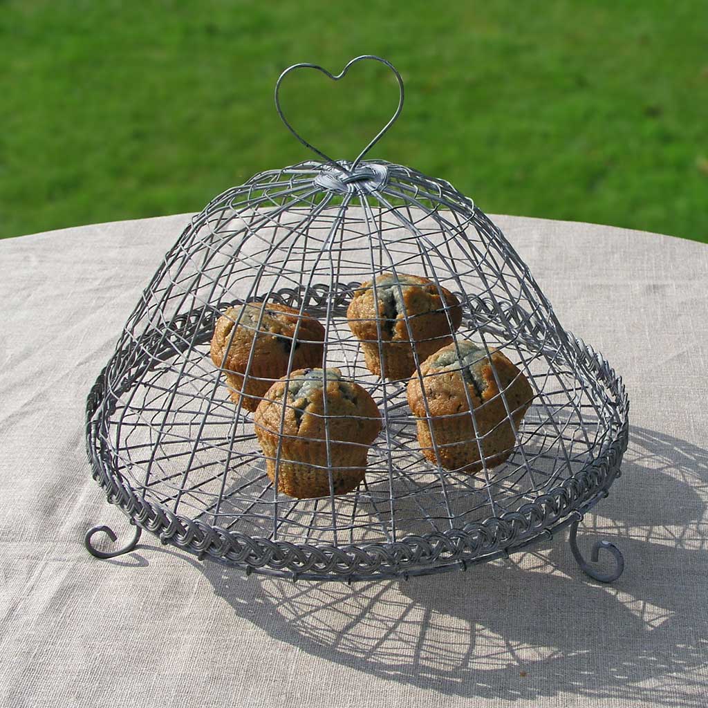 Wirework cake stand with pretty domed lid, perfect presentation for alfresco tea parties.