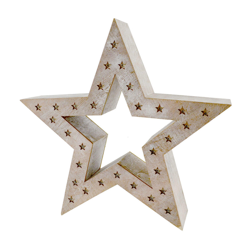 For a little extra sparkle at Christmas this pretty wooden star will gently glow on the window sill or mantle-piece.