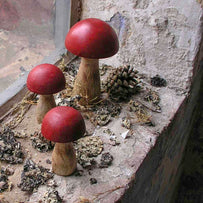Lovely little wooden mushrooms with a cheery painted red cap.