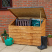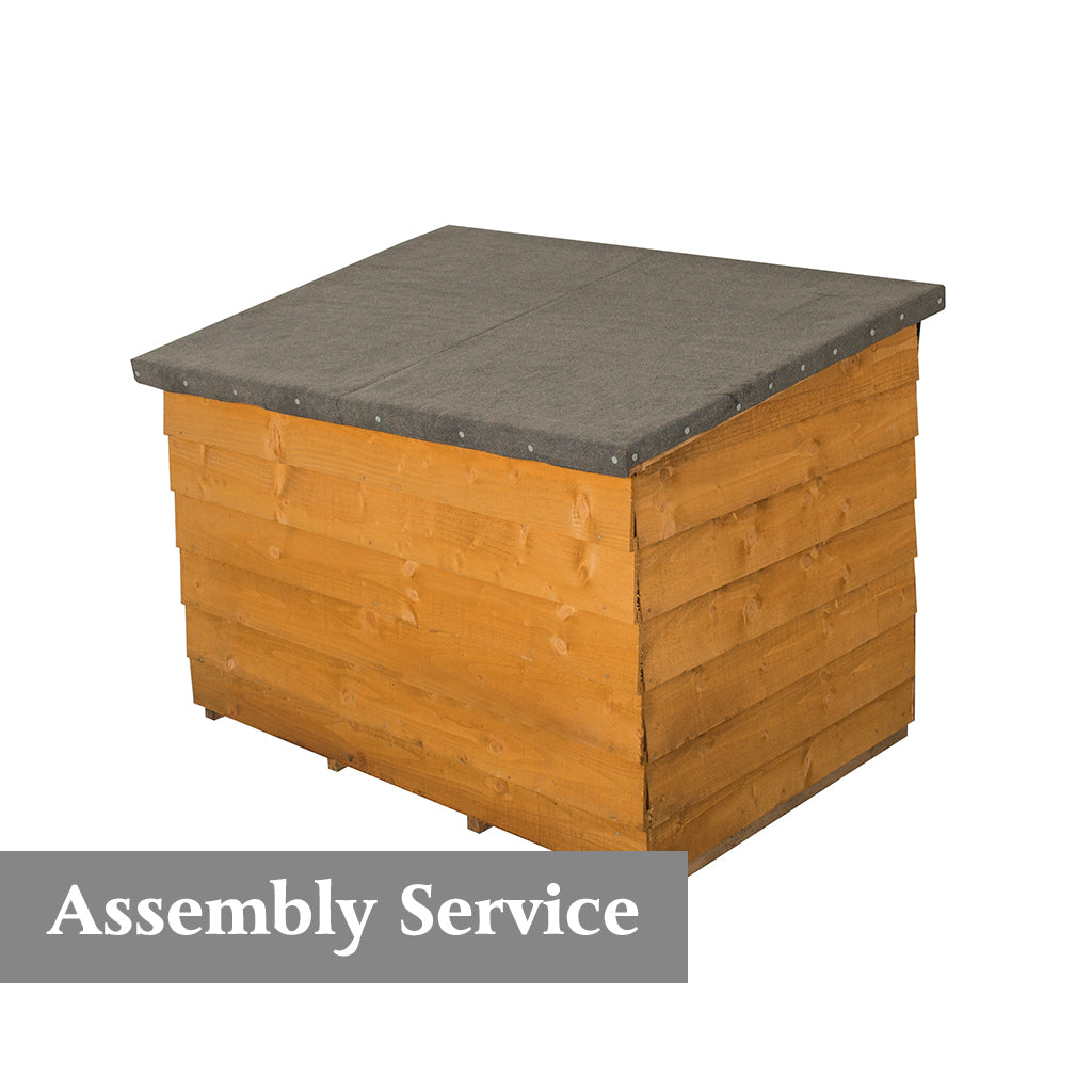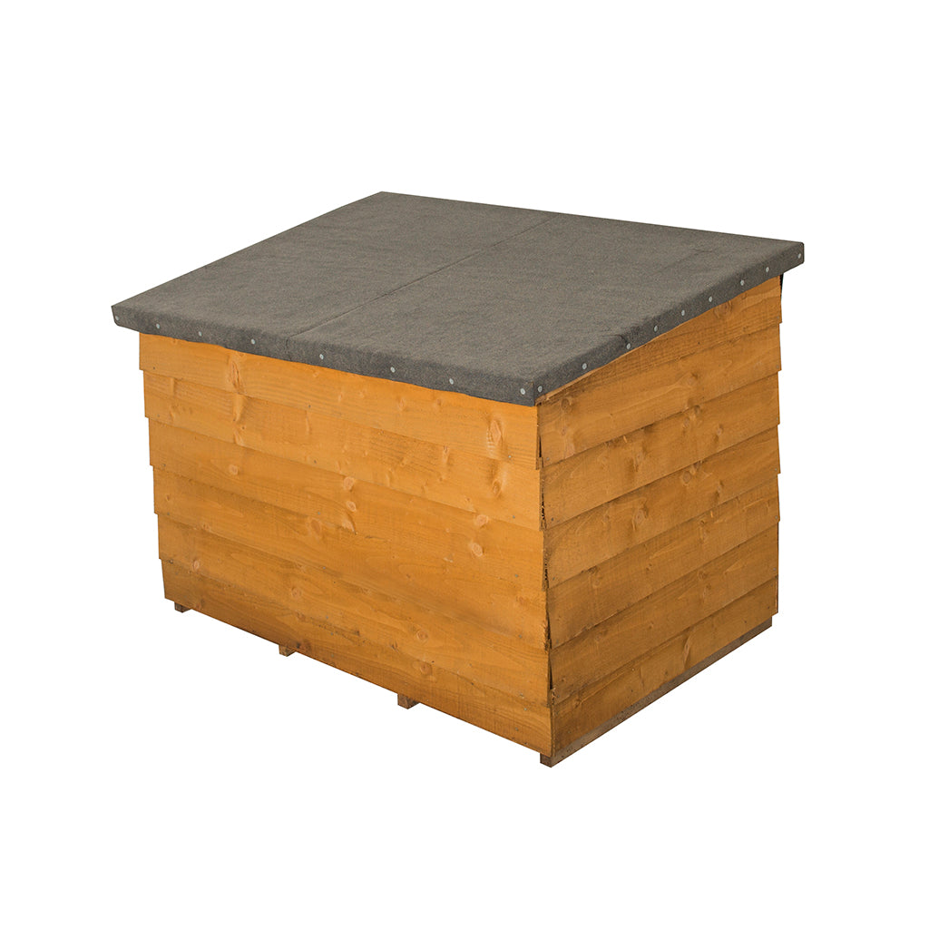 This storage chest has a traditional overlap construction that allows for natural movement of the timber during changes in temperature, and keeps the interior watertight with the help of the roof felt.
