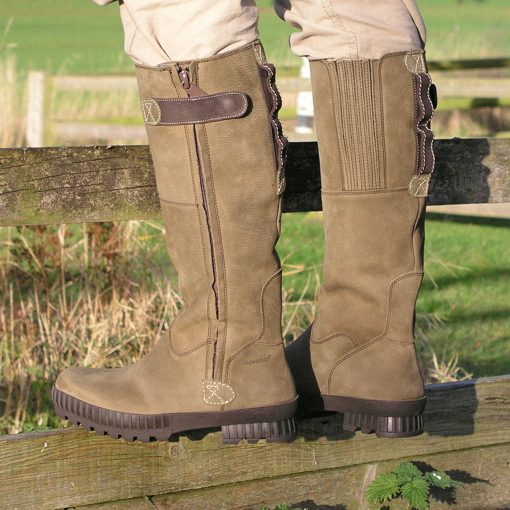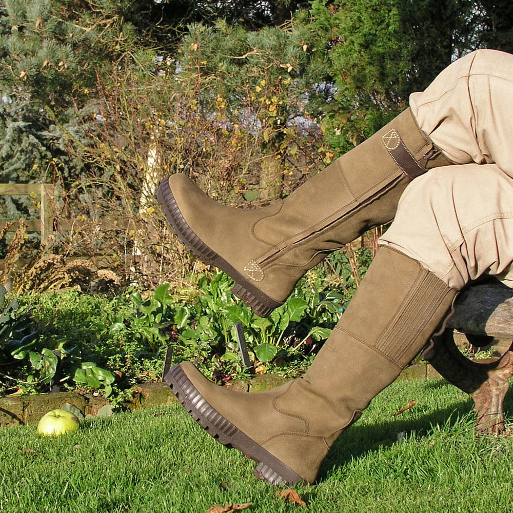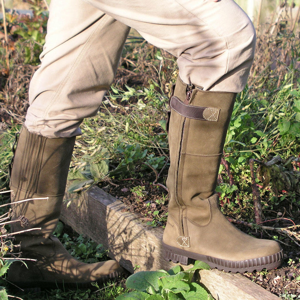 At last you can go for country walks and even trog around the garden in stylish footwear without fear of getting your feet wet. The zip runs all the way down the outside of the boot and a leather clasp keeps the top of the boot nicely together. On the inside, there is a beautifully styled elasticated piece for a little extra 'give', if needed at the calf. There is also a handy leather loop at the rear for tugging them on.